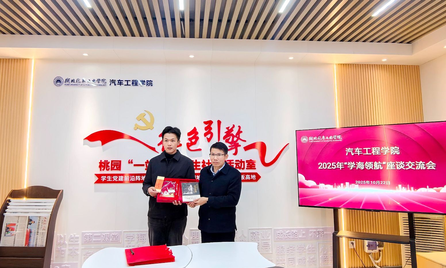 同日下午,汽车工程学院“红色引擎”一站式学生社区举办“学海领航”温情座谈会。副校长王生怀与车辆254班结对学生代表围坐“拉家常”,共话成长。
