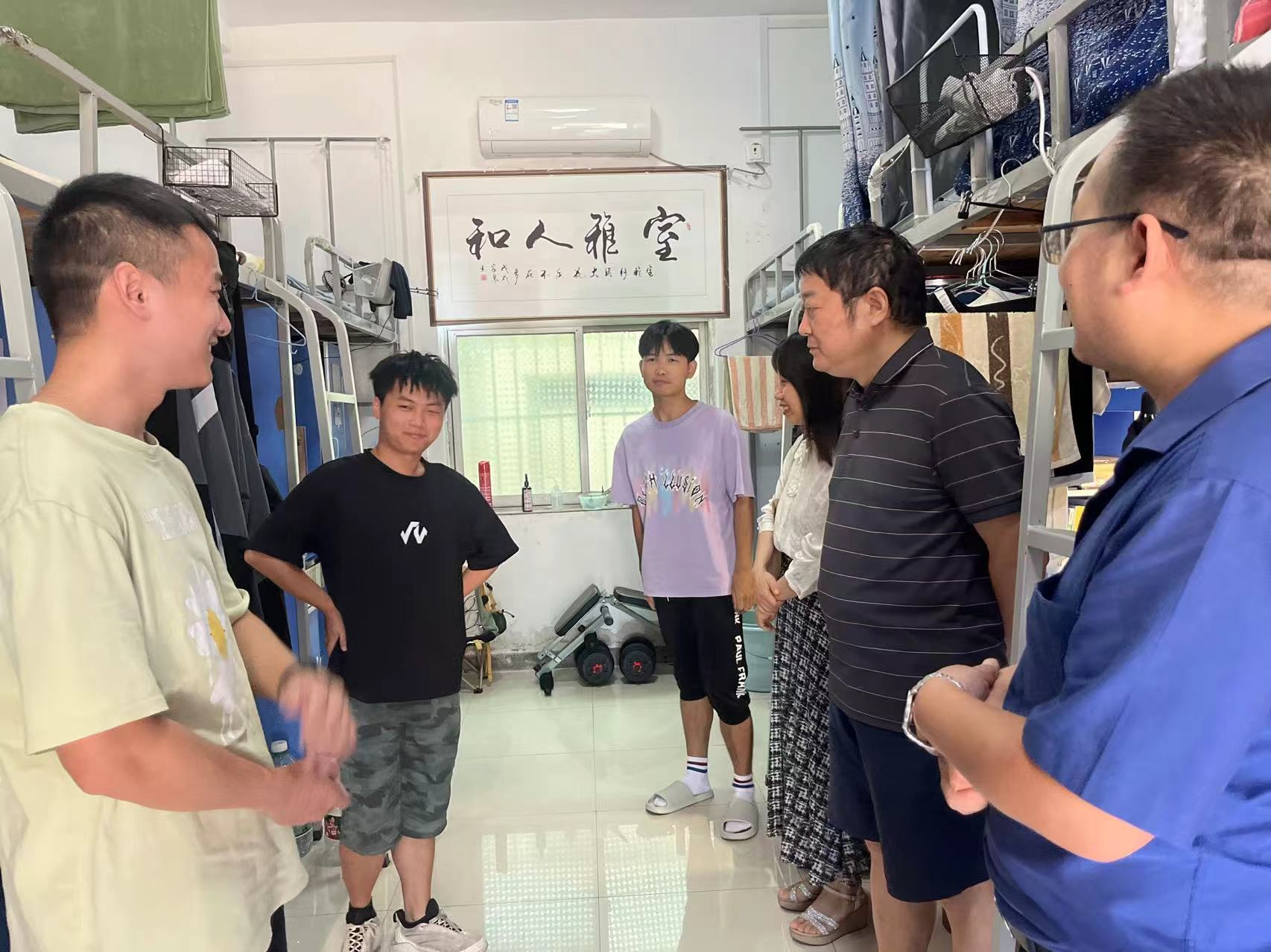 “家乡是哪里的?”“饮食还习惯吗?”“初入校园有什么困难吗?”为深入了解新生的生活状况,增强新生对学校的归属感,帮助他们顺利适应新环境,9月14日下午,电信学院领导班子成员深入学生宿舍看望新生。