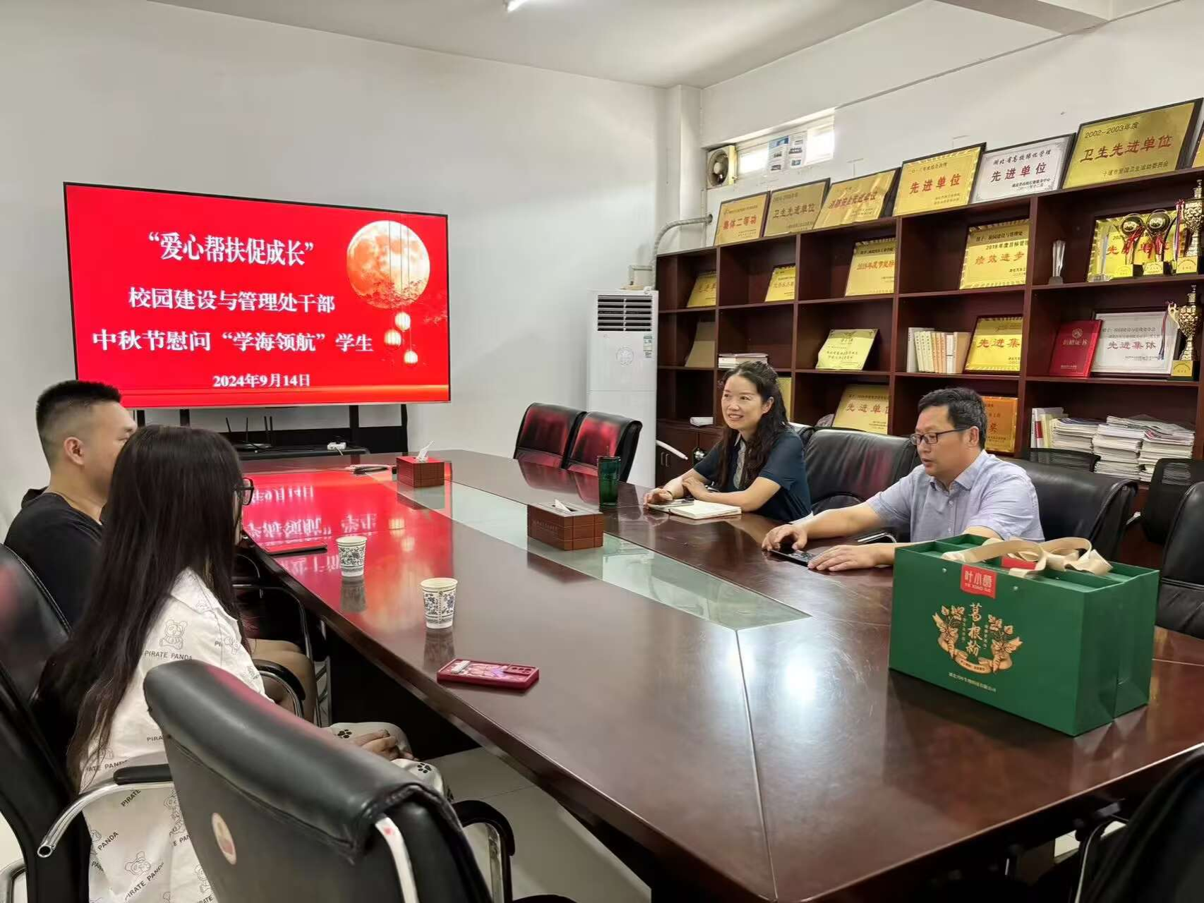 值此中秋佳节前夕,艺术与设计学院分党委书记黄进涛及校建管处干部勾建新、任慧玲,携手深入学院“学海领航”学子,传递着浓浓的节日关怀与温暖。