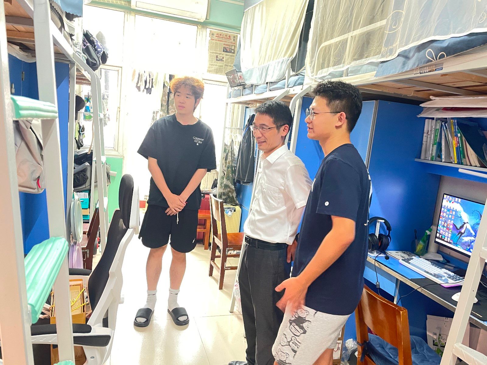 黄进涛在走访宿舍时,以温暖的言辞与学生交流,关心学生放假是否回家,期初的学习情况以及近期的娱乐活动,鼓励学生们不仅要追求卓越的学术成绩,更要注重身心健康的全面发展,学会在忙碌中寻找乐趣,在挑战中磨砺意志,并暖心提醒遇到困难可寻求辅导员及学院支持。