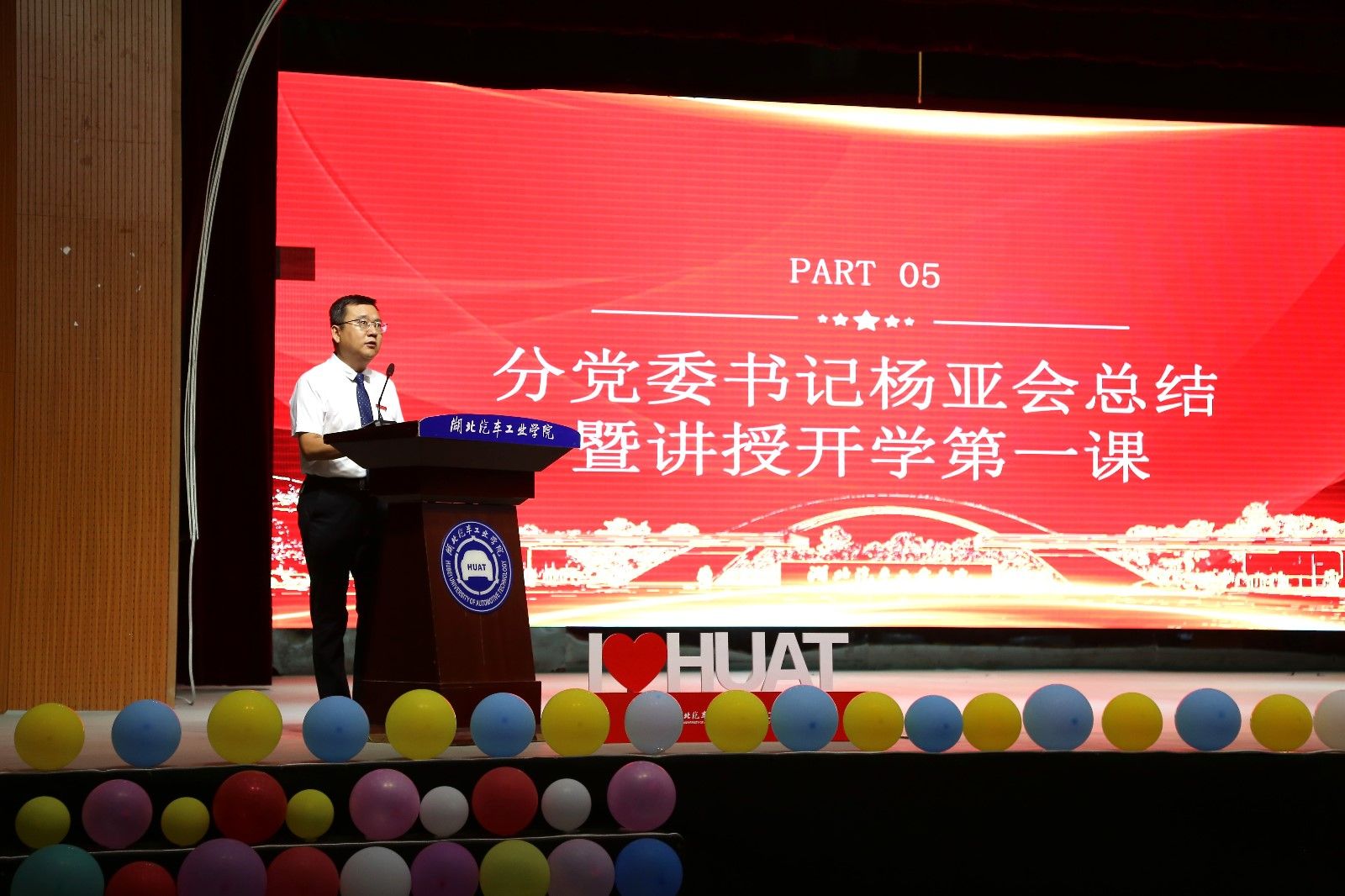 满“新”启航,筑梦未来。9月16日上午,汽车工程学院在大礼堂举行2024级新生开学典礼暨“开学第一课”,学院全体在校班子成员、系主任、本科专业负责人、新生班主任及全体辅导员共同出席大会。分党委书记杨亚会以“青春正逢盛世 奋斗恰当其时”为题,为全体新生讲授“开学第一课”。