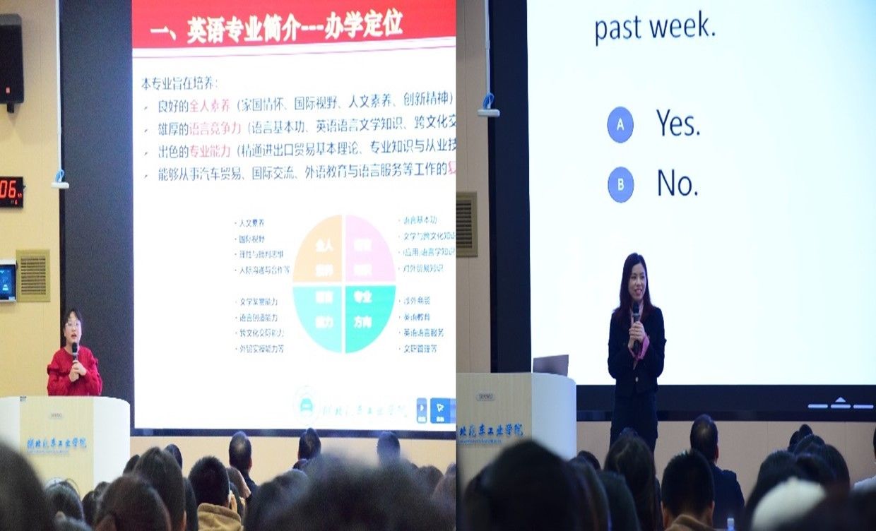 首先英语专业系主任王吟进行了英语专业教育,为新生们详细介绍了英语专业的课程设置、培养目标以及未来的发展方向。并展望了英语专业的未来发展方向,为新生们描绘了一幅广阔的职业蓝图,激励他们在大学四年里努力学习,为实现自己的梦想而奋斗。