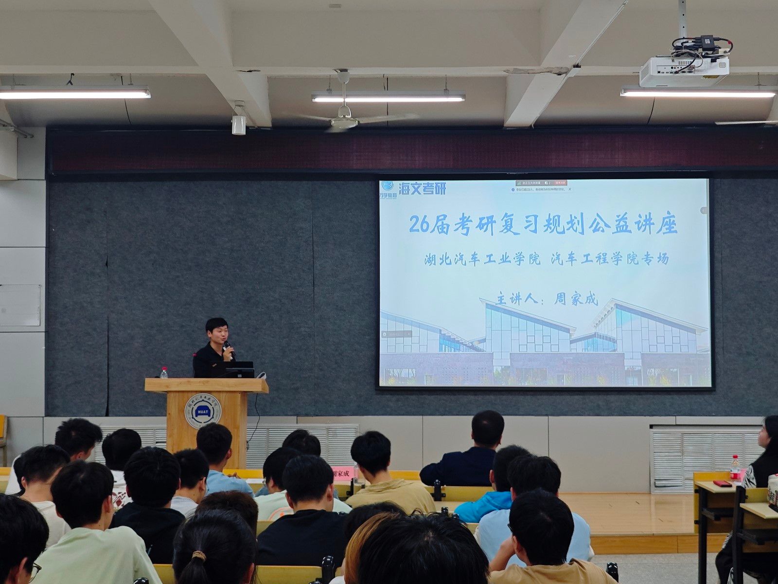 随后,周家成作“2025届考研志愿报考指导及2026届考研复习规划”专题讲座,为25届考研学子做最后的冲刺报考指导,解读考研报名阶段需要注意的相关流程与可能存在的问题,提供了详实的报考建议。根据大数据分析,对26届的考研形势进行了详细介绍,结合考研成功案例,指出合理选择报考院校可显著提高录取率,并从考试科目、整体流程等方面,分享了实用的备考规划。