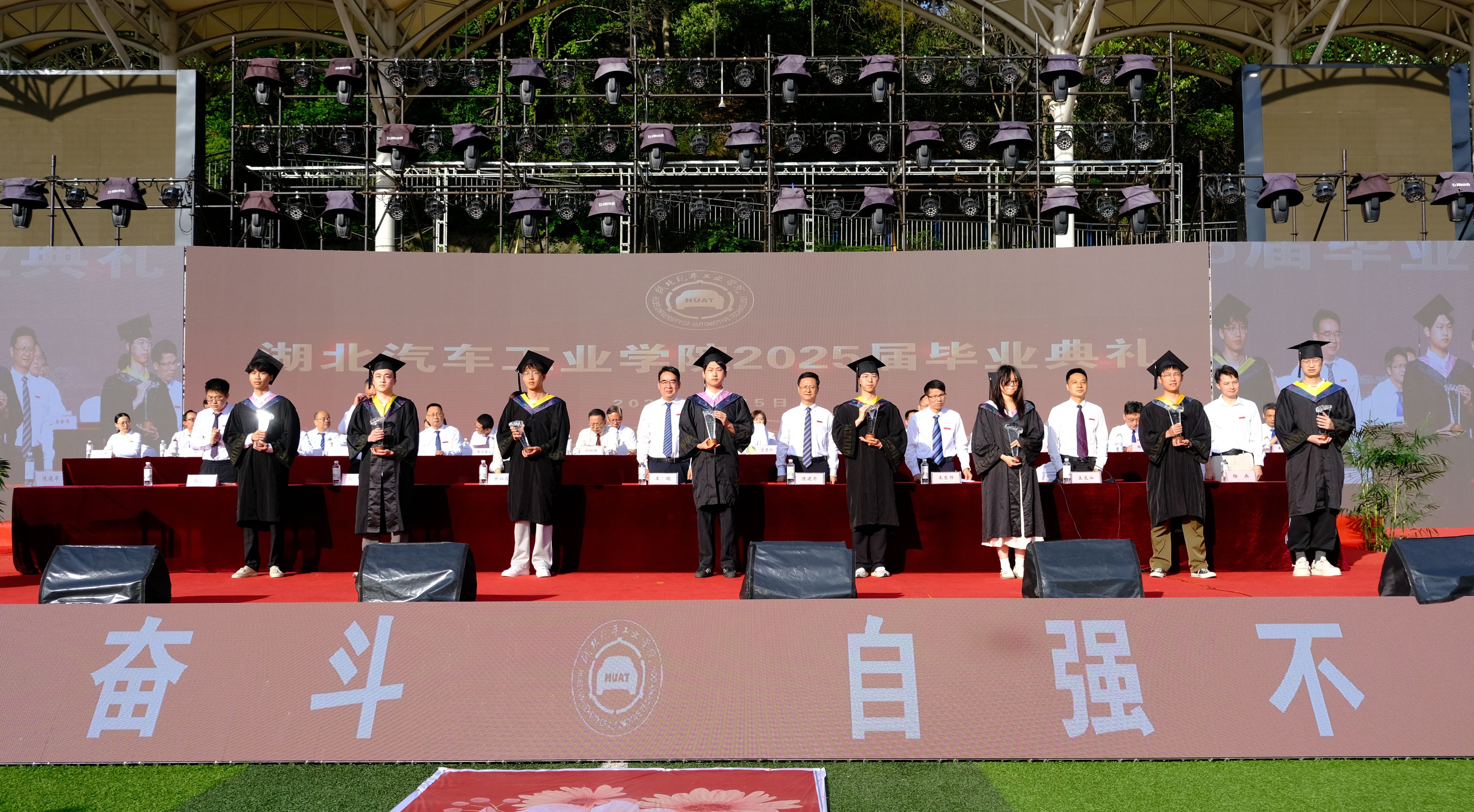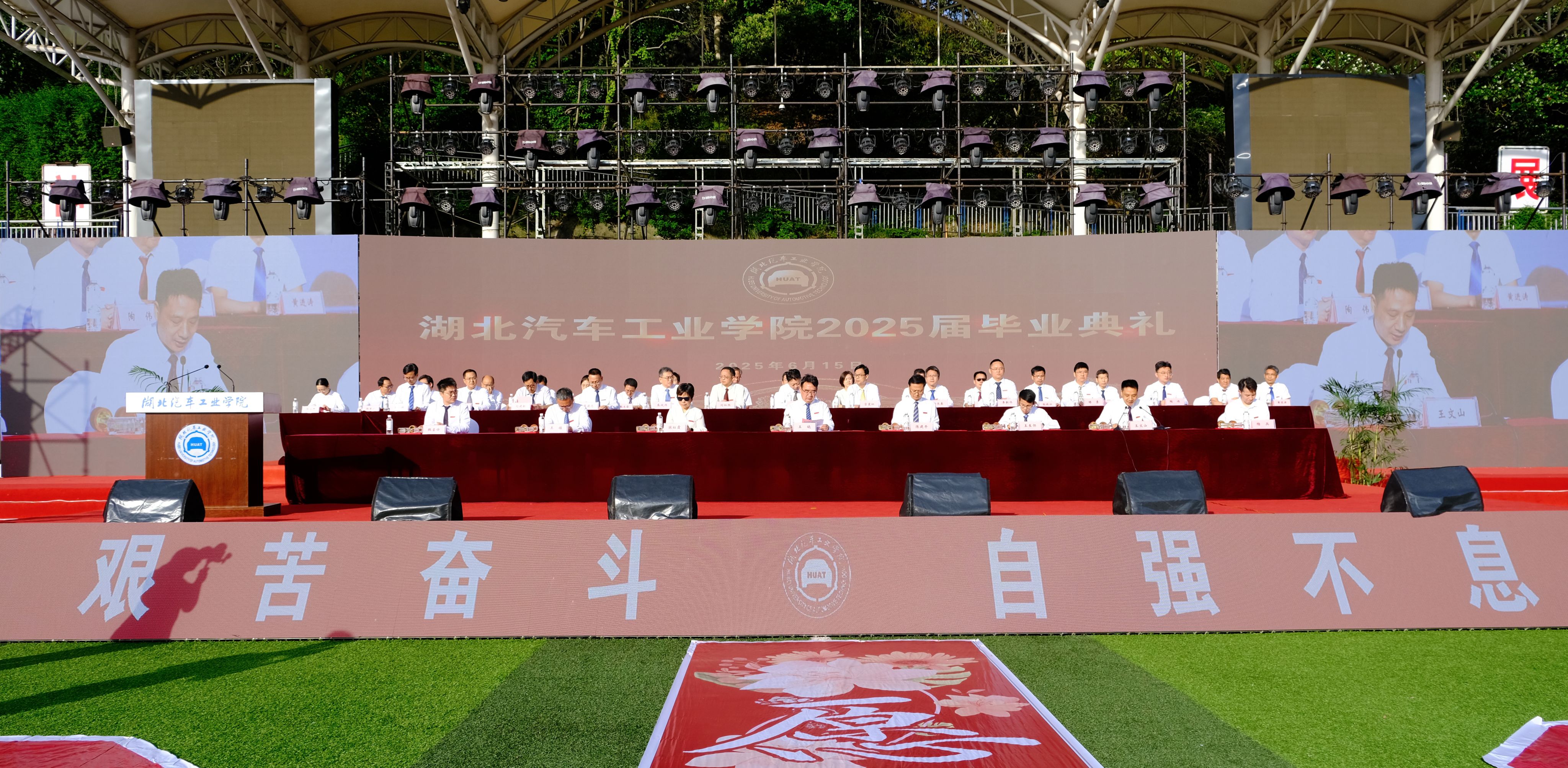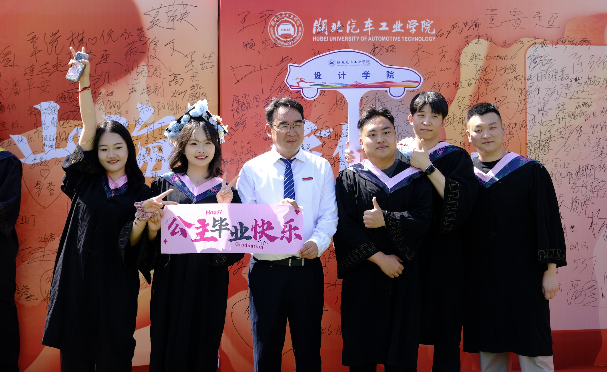 典礼现场右侧由设计学院提供的国家艺术基金作品展“文旅融合的武当民俗艺术数字化文创产品设计”,为全体师生带来充满创意与匠心的视觉盛宴。左侧“我们毕业啦”毕业生打卡心愿墙,吸引了大量毕业生驻足合影留念。东风纳米系列新款车型惊艳亮相,尽显科技创新魅力。