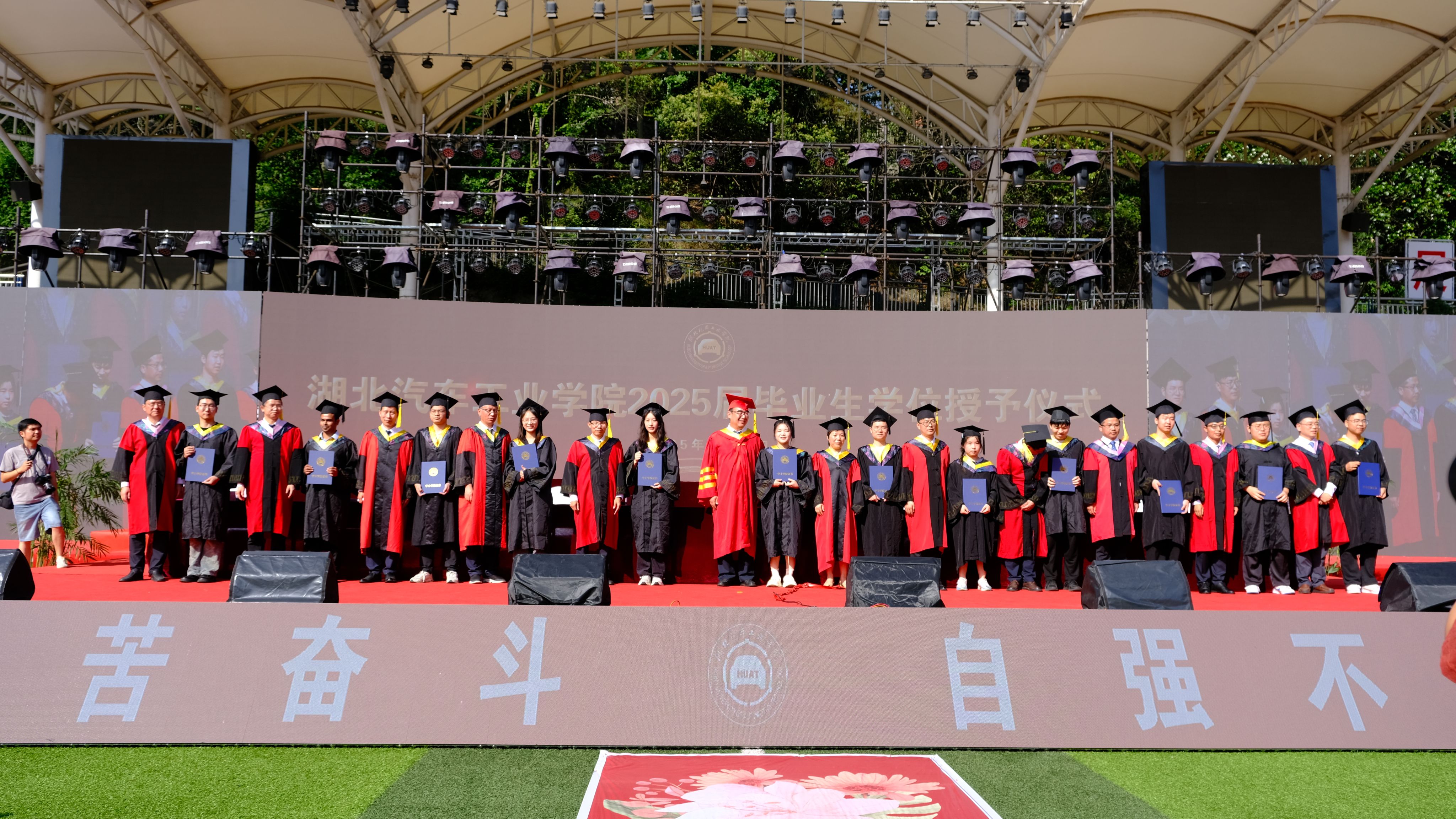学位授予仪式上,党委常委、副校长王生怀宣读了学位授予决定。毕业生们穿着学位服有序上台,学位评定委员会成员为他们拨苏正冠、颁发证书并合影留念,这一刻定格的不仅是笑容,更是毕业生们滚烫的青春。